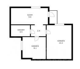 - Двухкомнатная квартира с кухней и просторным санузлом.