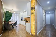 Дизайнерский ремонт с применением дизайнерских, интерьерных и световых решений. Планировочное решение продуманное исходя из проживания семьи из нескольких человек, большая "зонированая" кухня-гостиная, три изолированные комнаты, просторная прихожая и остеклённая лоджия.