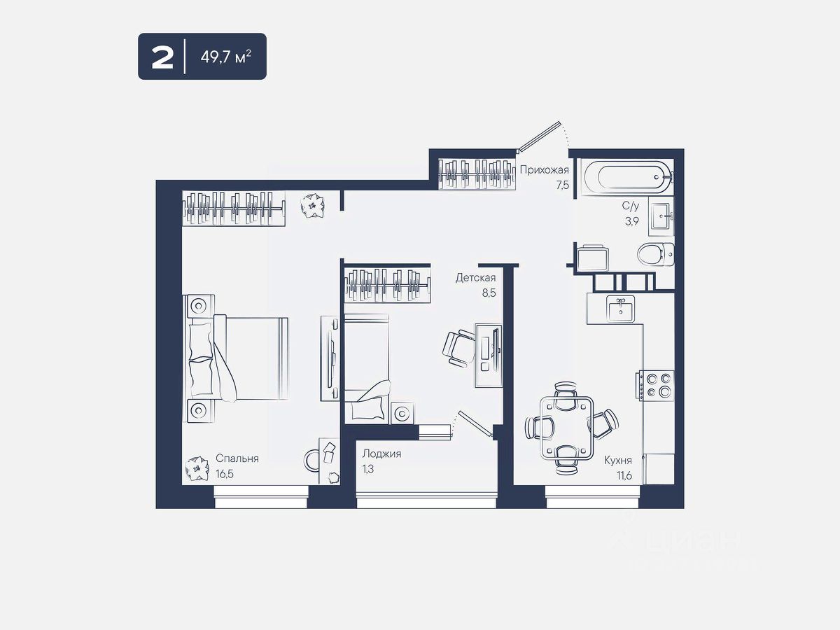 Общая площадь49,7 м²
