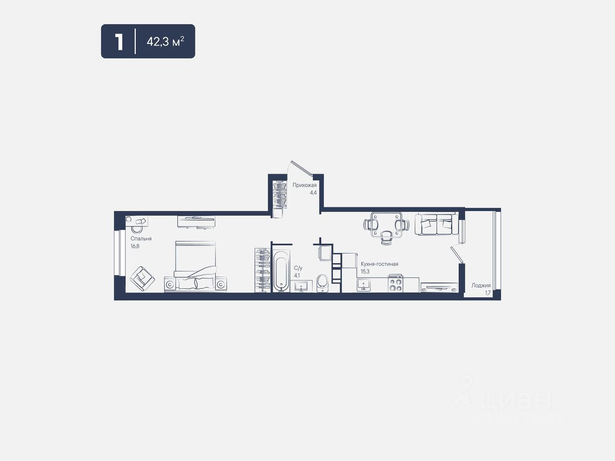 Продаётся 1-комнатная квартира в современном клубном квартале "Архитектор" от федерального застройщика ЮгСтройИнвест.