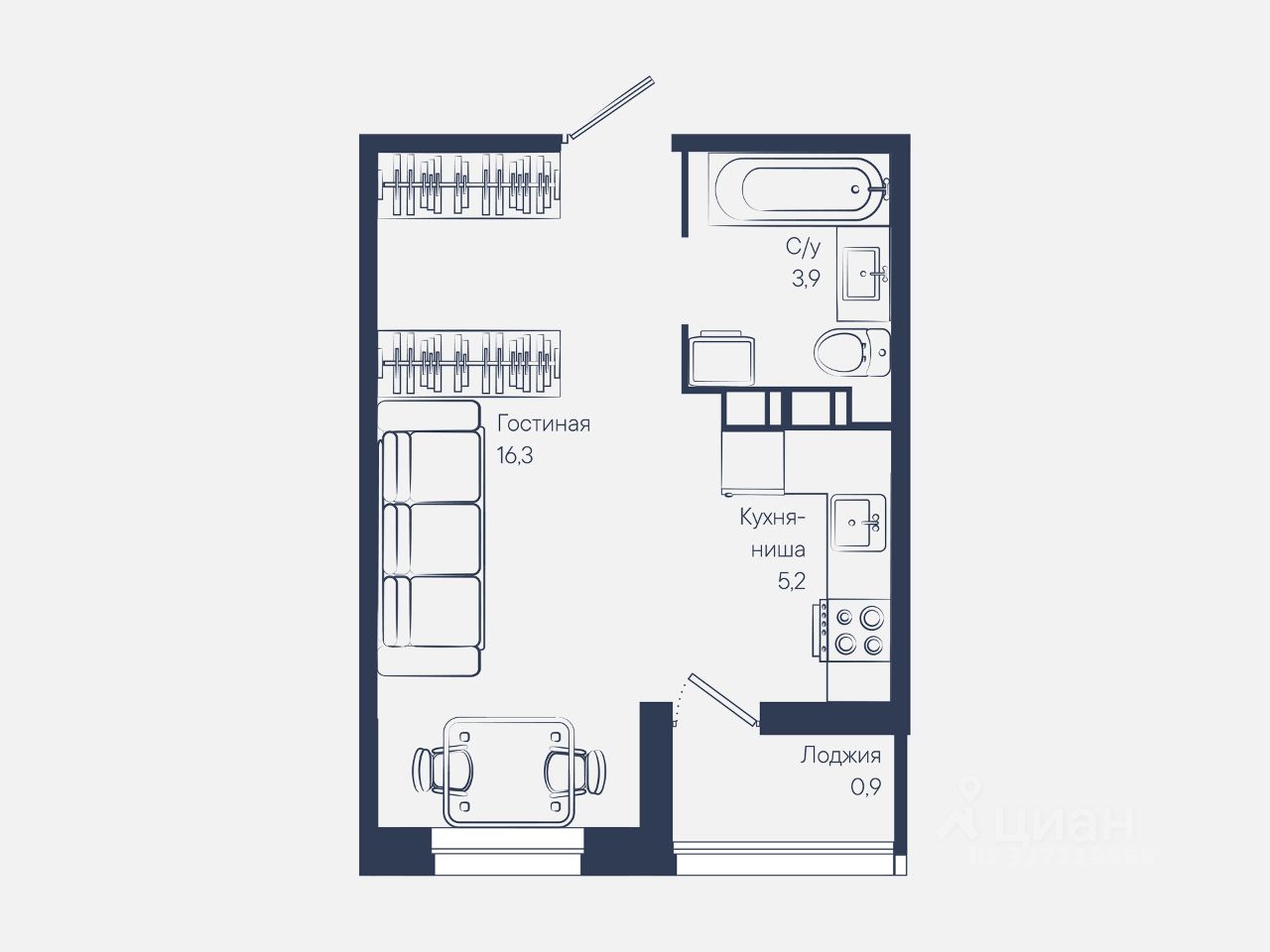 Общая площадь26,3 м²