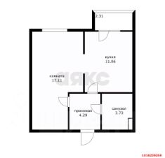 Планировка: просторная комната 17,11 кв м и кухня с выходом на балкон