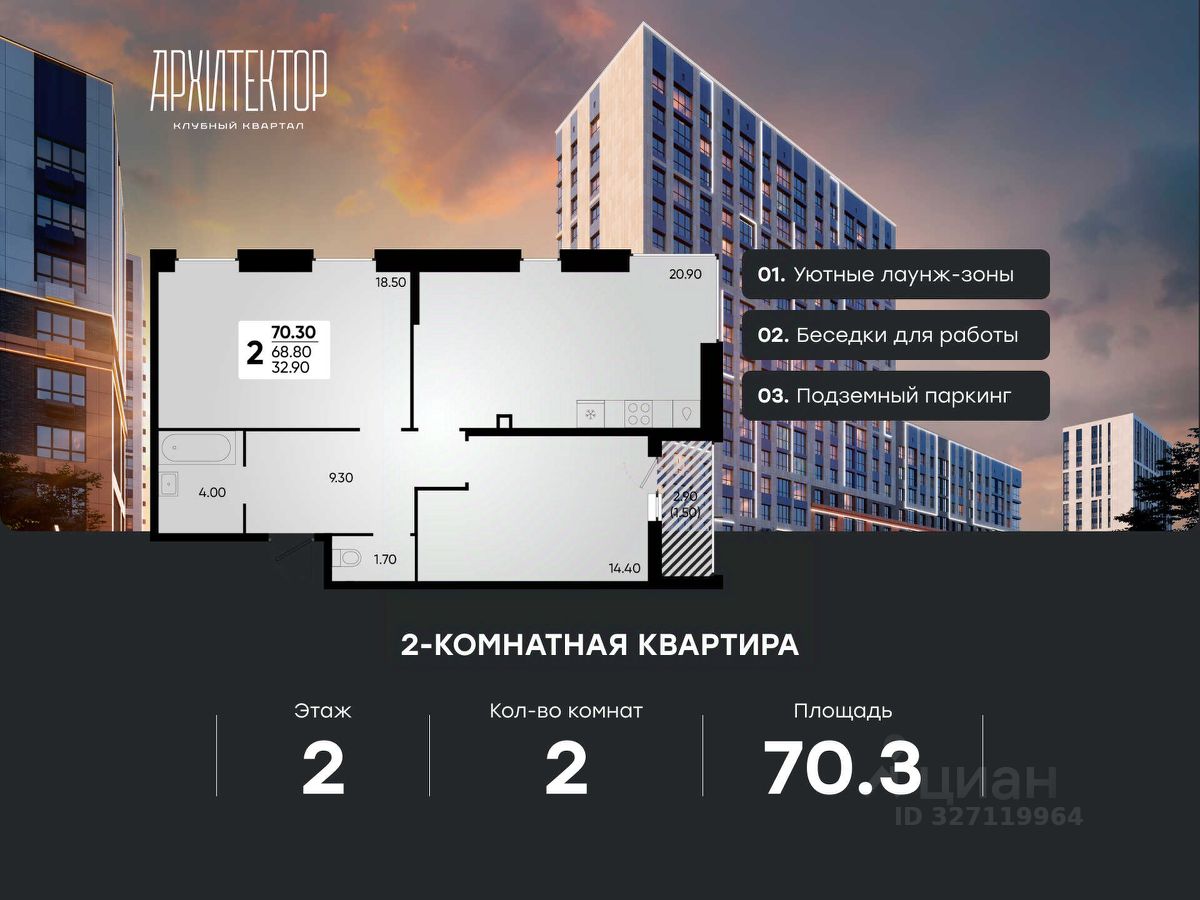 2-комнатная квартира в ЖК "Архитектор" от Федерального застройщика