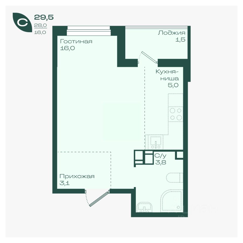 Современная студия с удобной планировкой и качественной отделкой;