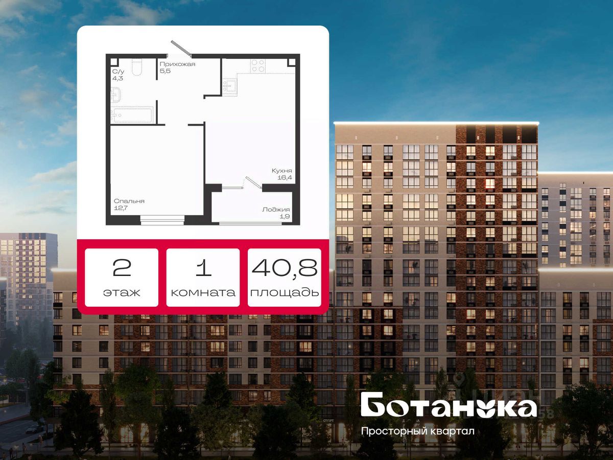 Продаётся уютная и светлая 1-комнатная квартира в новом квартале "Ботаника" — от федерального застройщика "ЮгСтройИнвест".