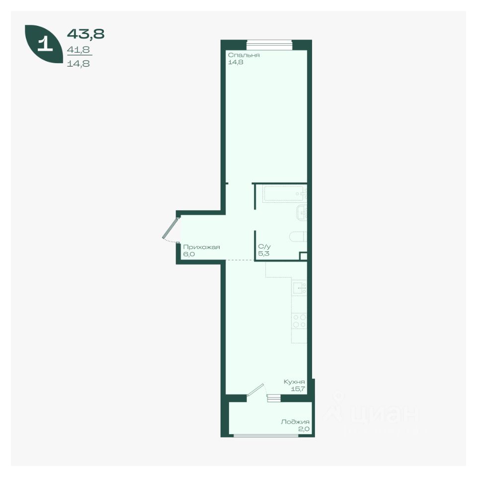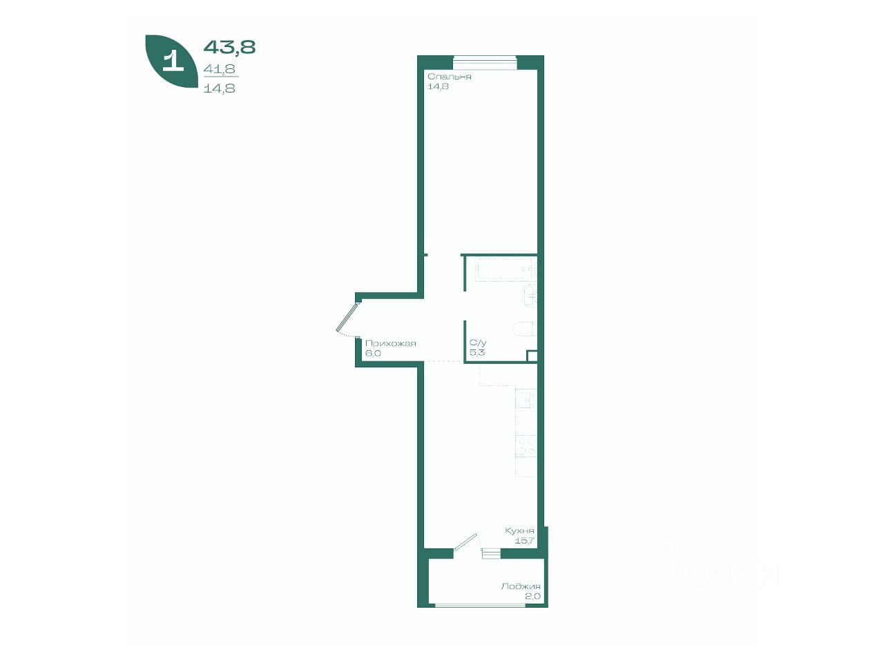 Общая площадь43,8 м²