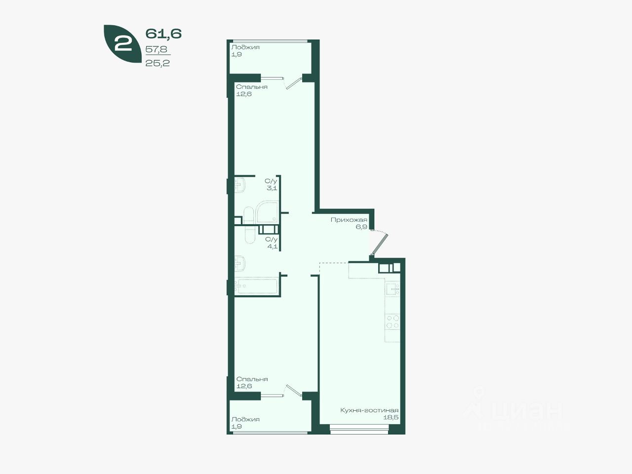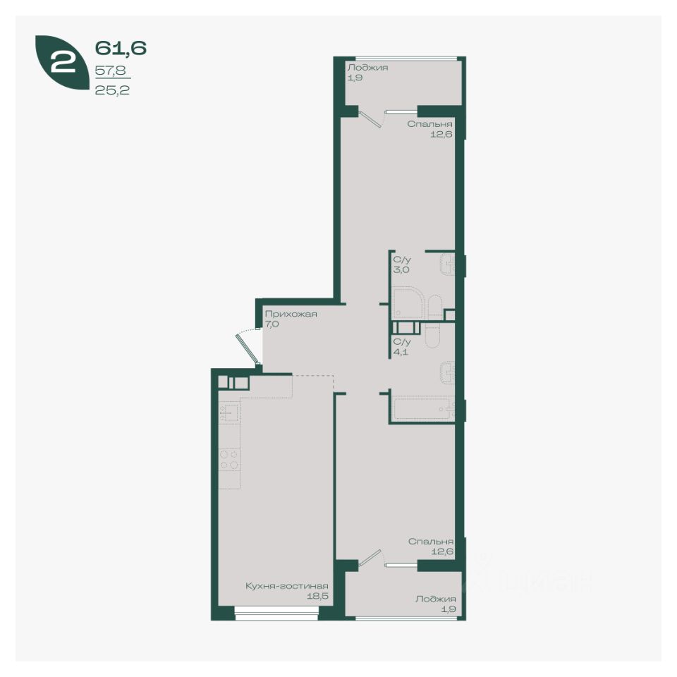 — Продуманная 2-комнатная планировка: отдельная спальня + уютная гостиная;