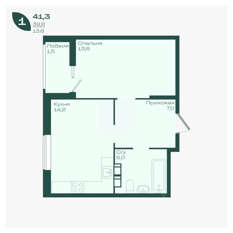 Общая площадь41,3 м²