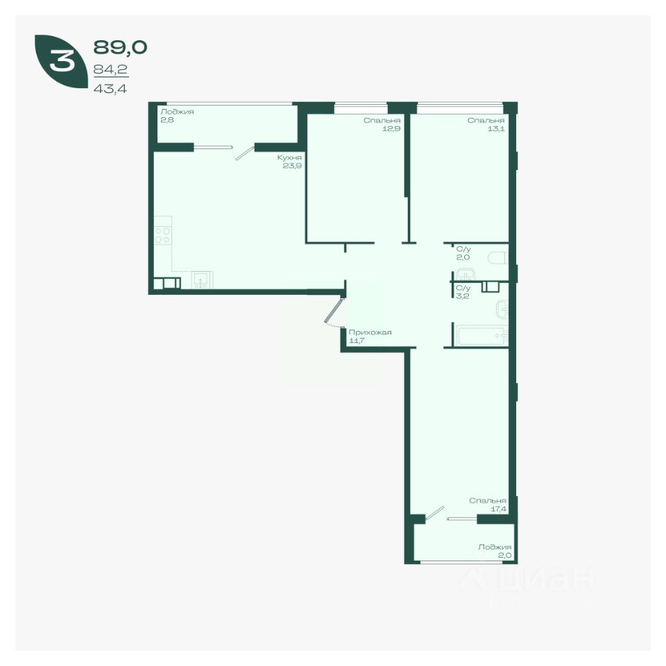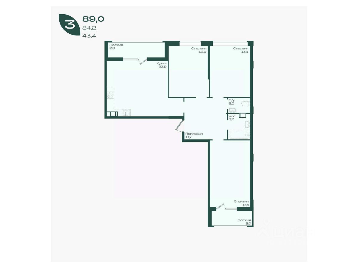 Общая площадь89 м²
