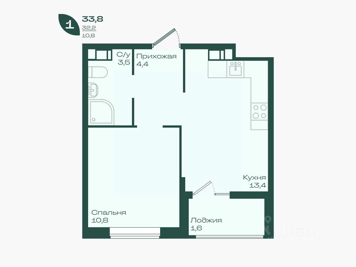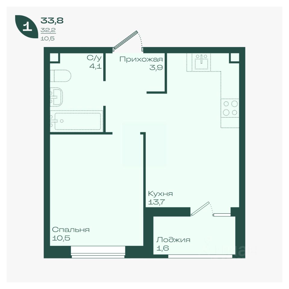 Общая площадь33,8 м²