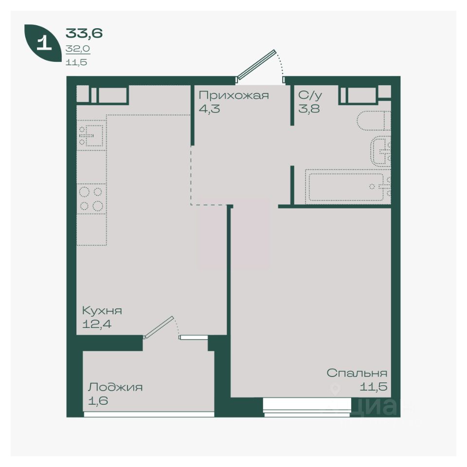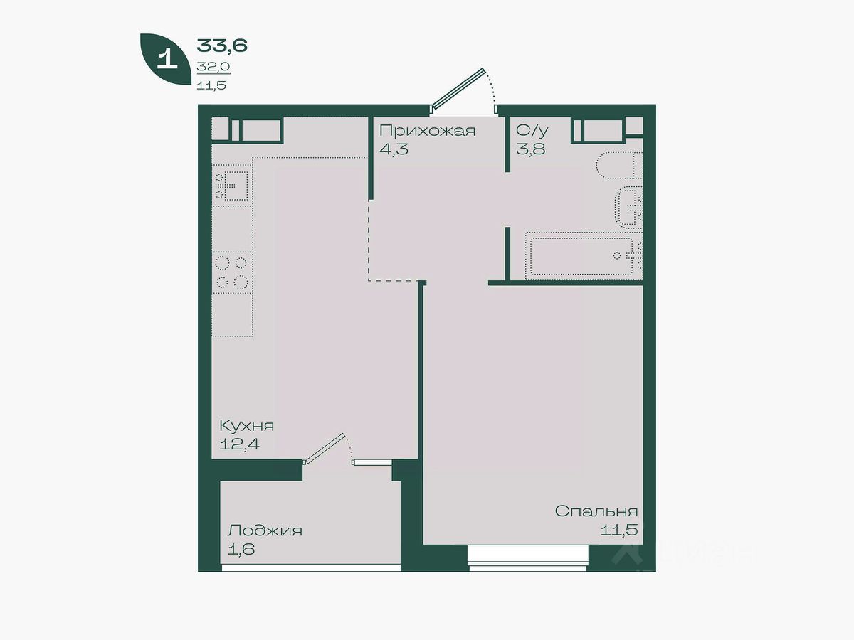 Общая площадь33,6 м²