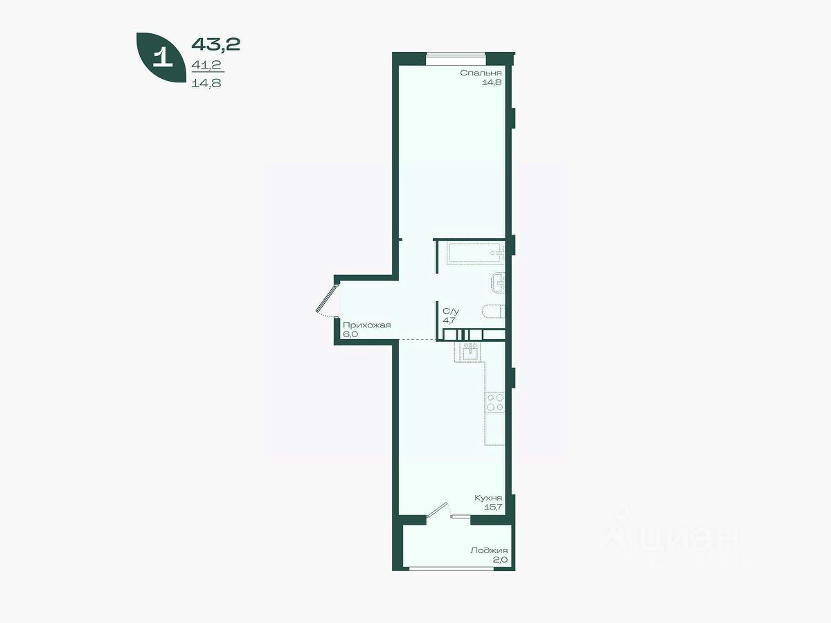 Общая площадь43,2 м²
