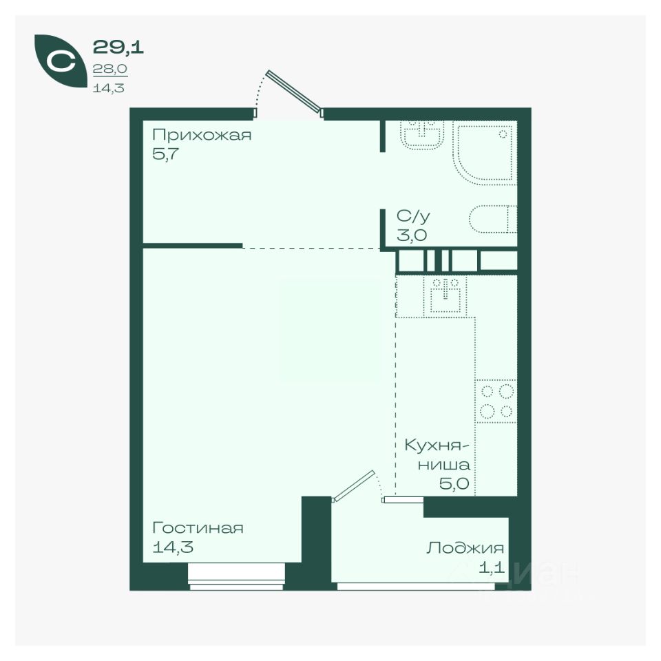 Общая площадь29,1 м²