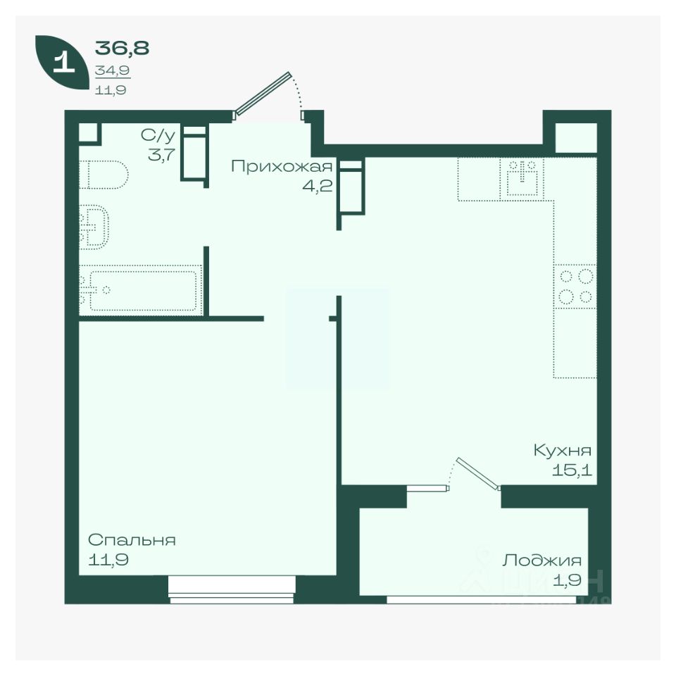 Общая площадь36,8 м²