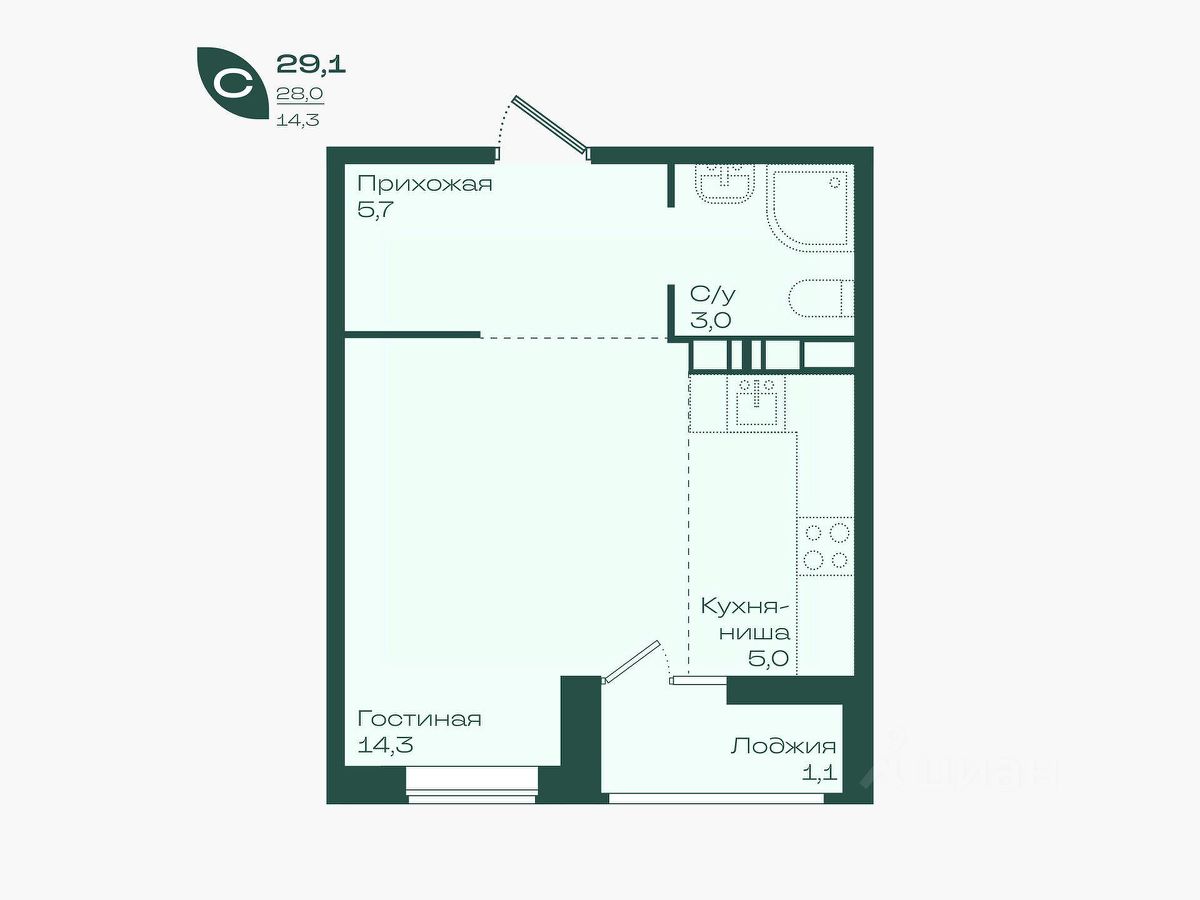 Общая площадь29,1 м²
