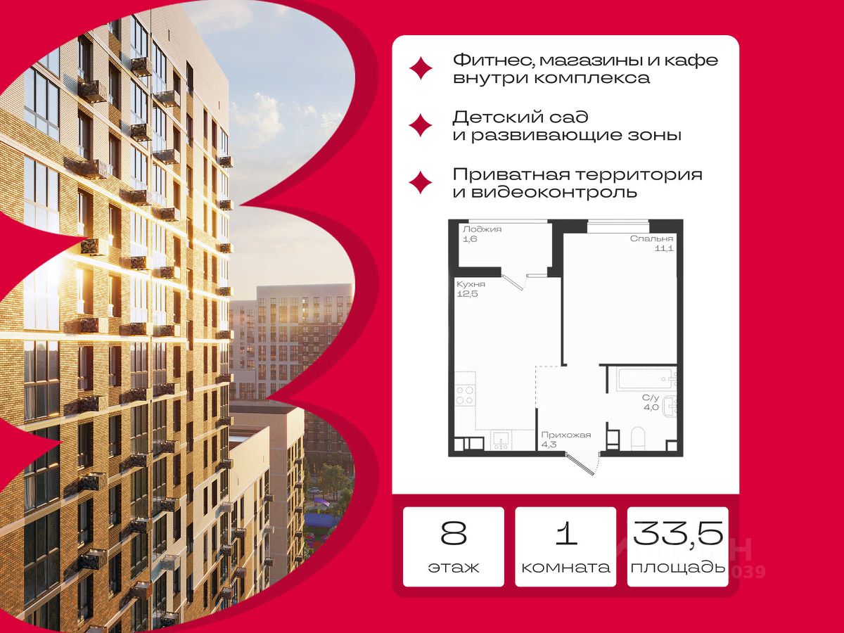 Общая площадь33,5 м²