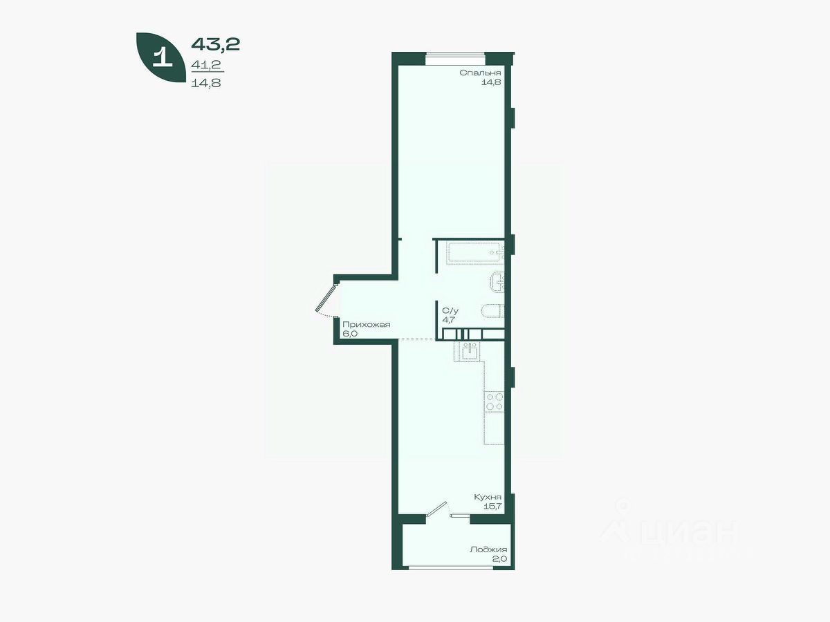 Общая площадь43,2 м²