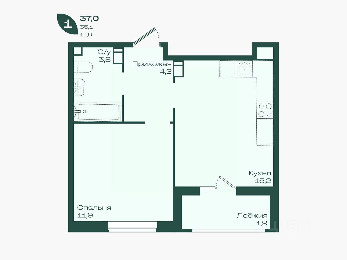 Общая площадь37 м²
