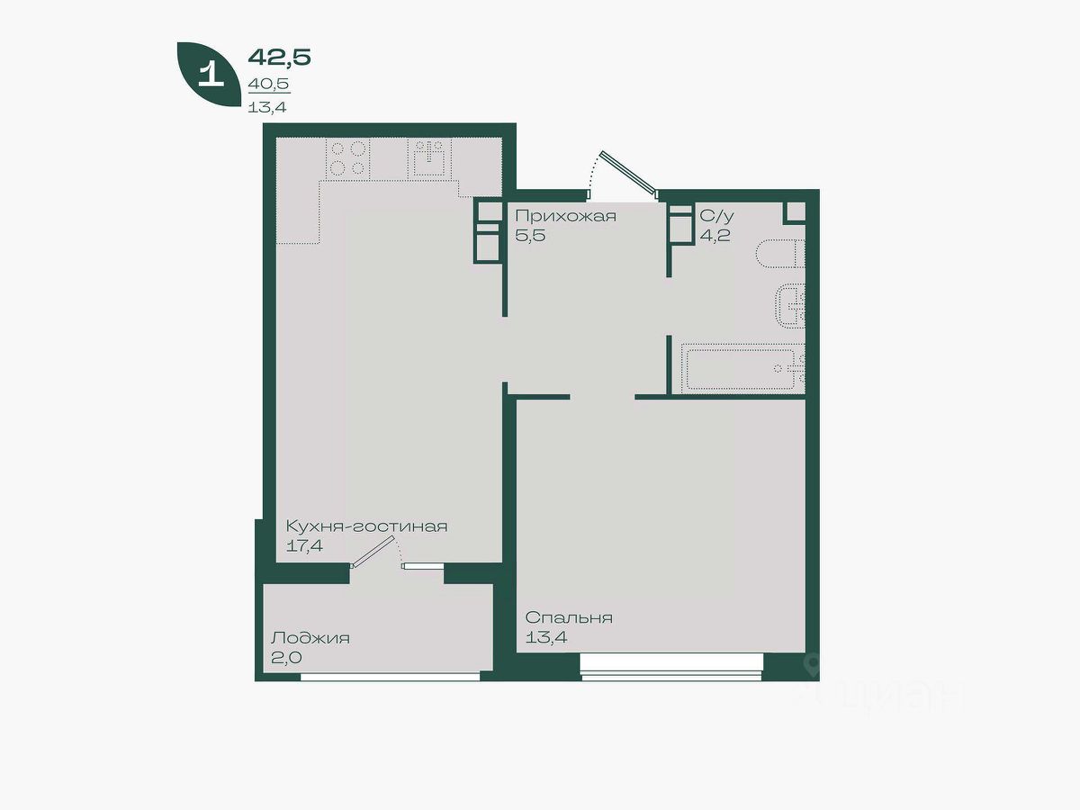 Общая площадь42,5 м²