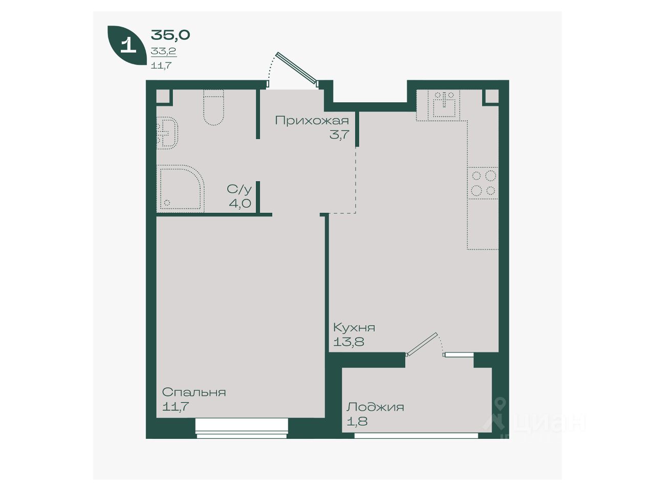 Общая площадь35 м²