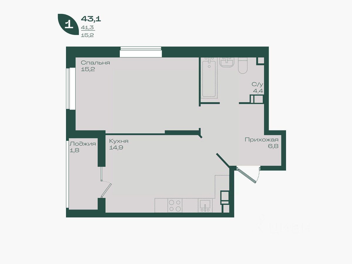 Общая площадь43,1 м²