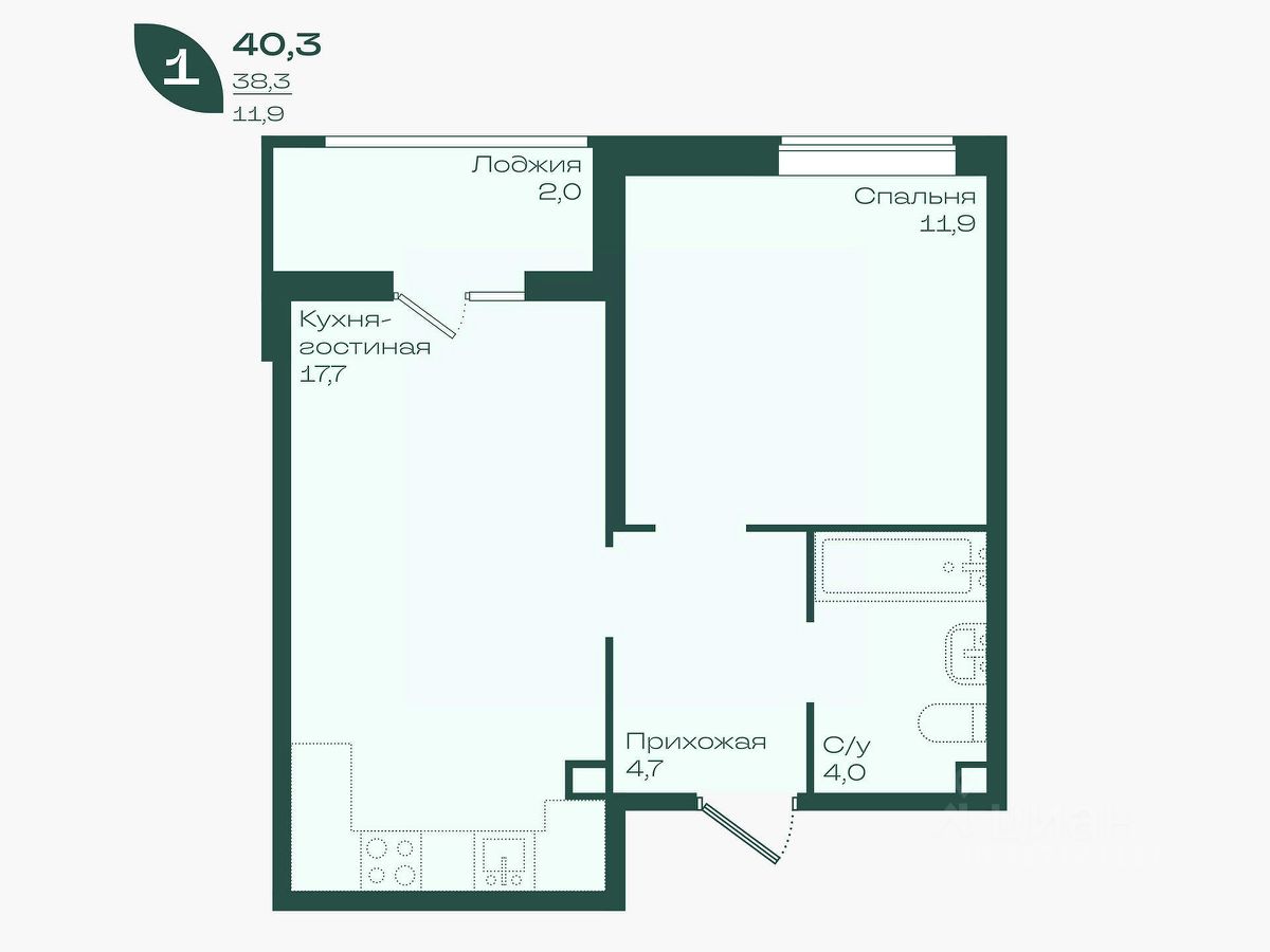 Общая площадь40,3 м²