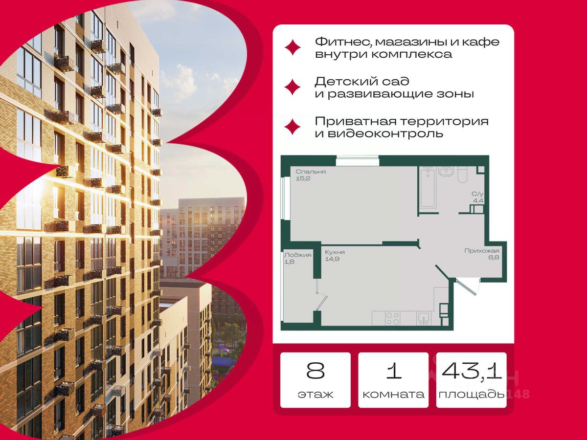 Общая площадь43,1 м²