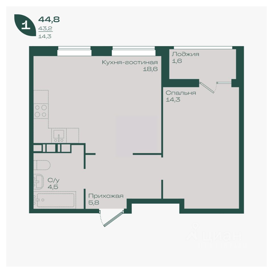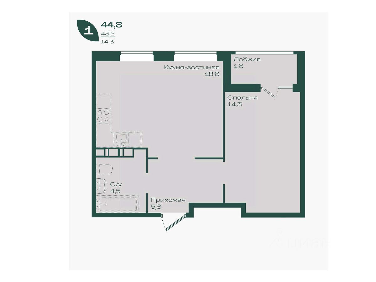 Общая площадь44,8 м²