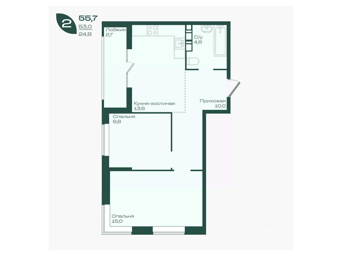 Общая площадь55,7 м²