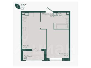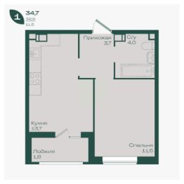Общая площадь34,7 м²