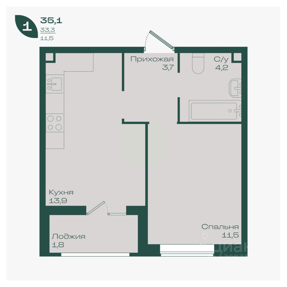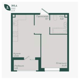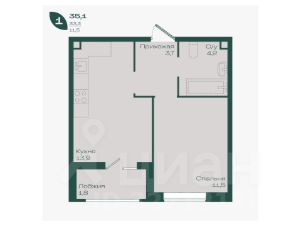 Общая площадь35,1 м²