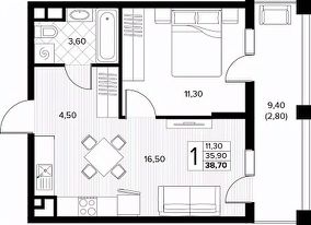 38,7 м²