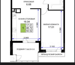 1 лоджия, 1 балкон
