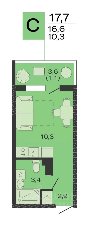 Общая площадь17,7 м²