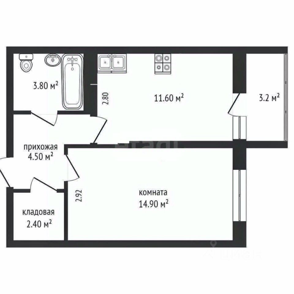 В продаже большая однокомнатная квартира в ЖК Открытие, ул. Дубравная, д. 1.