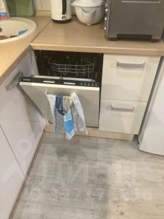 Просторная кухня-столовая оснащена современной бытовой техникой, включая духовой шкаф и посудомоечную машину.