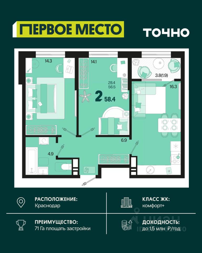 Жилой район "Первое место"- один из самых масштабных проектов в России. На территории 71 га 18 кварталов, 31 дом переменной этажности от 8 до 18 этажей, собственный парк 9 га, храмовый комплекс, пешеходный бульвар "Круг семьи", детские и спортивные площадки, мангальные зоны и различные локации для отдыха. В шаговой доступности действующие муниципальные образовательные учреждения: школа на 1 100 мест и детский сад на 250 мест. Помимо этого, в жилом районе "Первое место" построятся школа на 1700 мест с крытым 25-метровым бассейном и 5 детских садов на 1 490 мест. На первых этажах многоуровневых парковок "паркхабов" разместится более 61 тыс м2 коммерческих помещений. Жителям будут доступны собственный фитнес-центр, кафе, рестораны и магазины. В каждом подъезде предусмотрены дизайнерские холлы в стиле лобби отелей, консьерж-сервис, лапомойки, отдельные колясочные и велосипедные. Также в домах будут просторные кладовые помещения и комнаты для хранения почты с почтоматами для получения посылок из маркетплейсов.