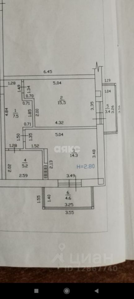 • Два застеклённых балкона (общая площадь с балконами — 50,5 м²)
