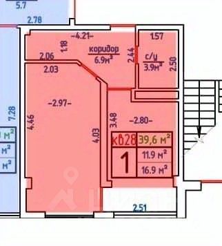Общая площадь 39,6 кв, кухня 12 кв.