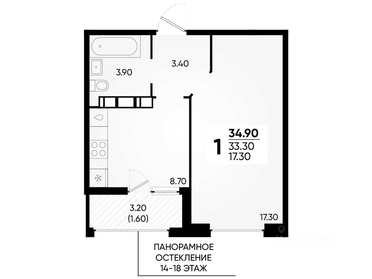 — Классическая 1-комнатная планировка;