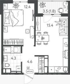 15,4 м²