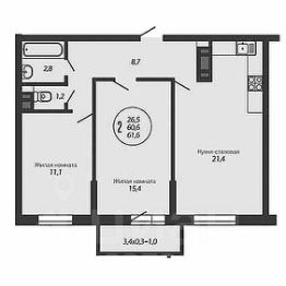 1 лоджия, 1 балкон