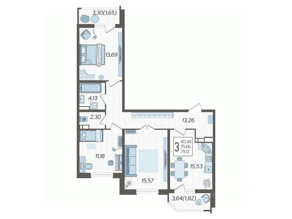 Продаётся 3-комнатная квартира в строящемся доме (Дом Литер 1), срок сдачи: 1 кв. 2025, общей площадью 79.13 кв.м., на 10 этаже. Без отделки, но с возможностью заказать отделку