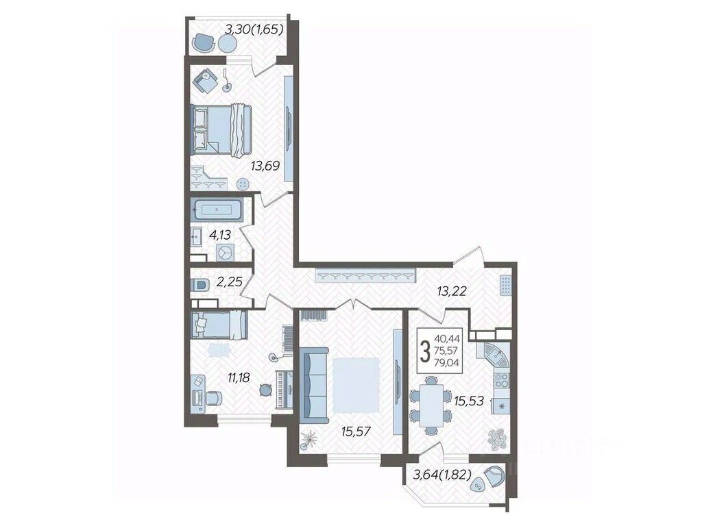Продаётся 3-комнатная квартира в строящемся доме (Дом Литер 1), срок сдачи: 1 кв. 2025, общей площадью 79.04 кв.м., на 17 этаже. Без отделки, но с возможностью заказать отделку