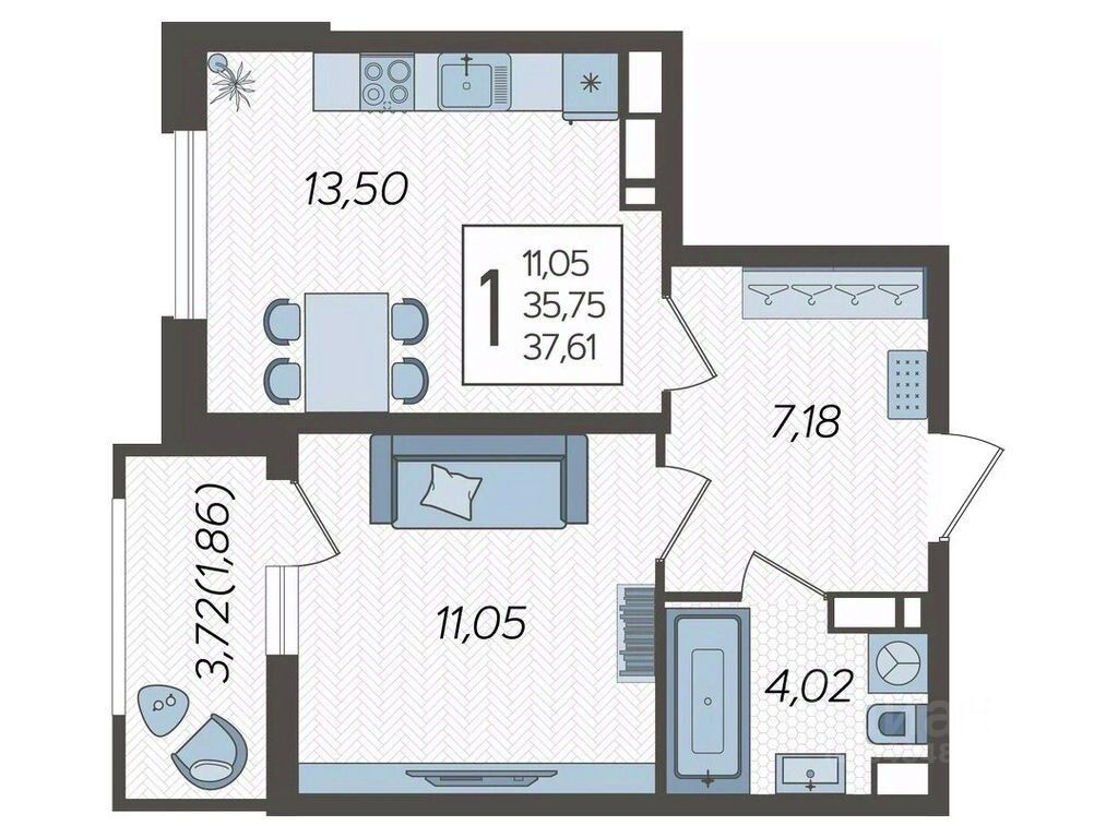 Продаётся 1-комнатная квартира в строящемся доме (Дом Литер 1), срок сдачи: 1 кв. 2025, общей площадью 37.61 кв.м., на 19 этаже. Без отделки, но с возможностью заказать отделку