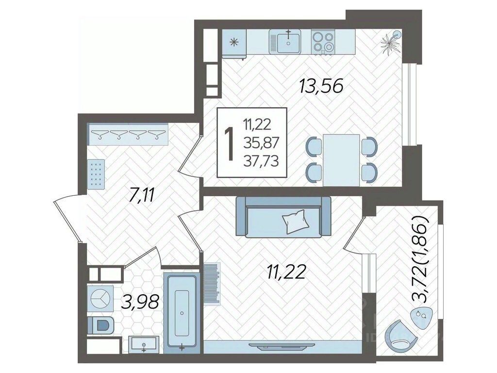 Продаётся 1-комнатная квартира в строящемся доме (Дом Литер 1), срок сдачи: 1 кв. 2025, общей площадью 37.73 кв.м., на 10 этаже. Без отделки, но с возможностью заказать отделку