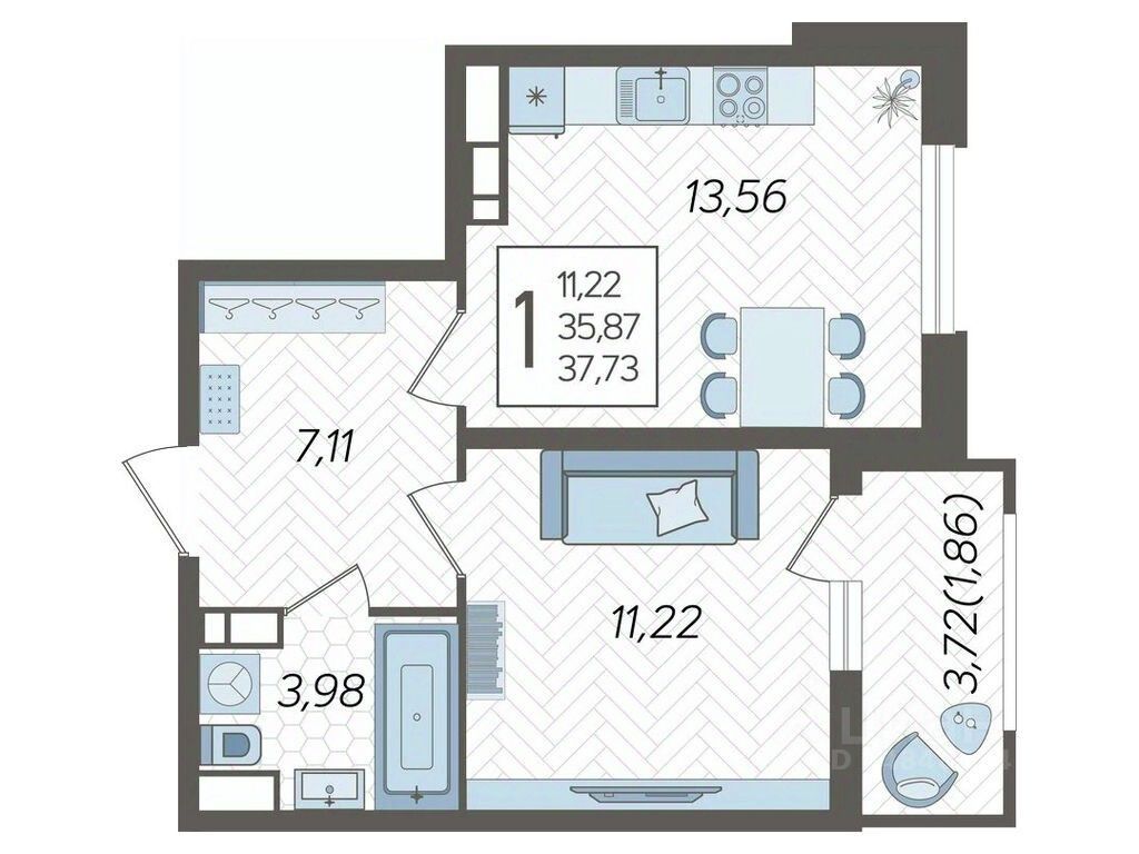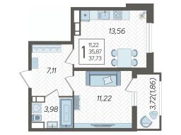 Продаётся 1-комнатная квартира в строящемся доме (Дом Литер 1), срок сдачи: 1 кв. 2025, общей площадью 37.73 кв.м., на 12 этаже. Без отделки, но с возможностью заказать отделку