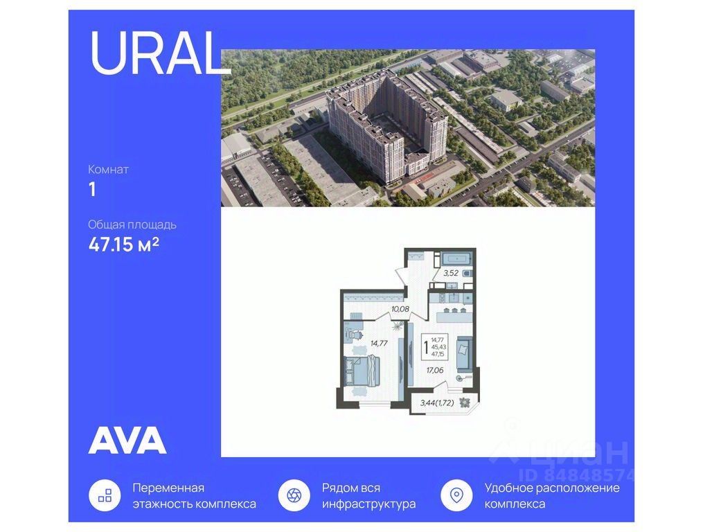 Дом URAL естественным образом, благодаря своей форме, образует закрытую территорию. Стильный фасад дополняют застекленные панорамные лоджии и балконы. С верхних этажей в солнечную погоду можно рассмотреть очертания гор Большого Кавказа. На территории комплекса откроется детский сад и фитнес-центр.Дом URAL находится близко к удобным транспортным развязкам, благодаря чему выезд на море за час без пробок!