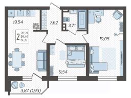 Продаётся 2-комнатная квартира в строящемся доме (Дом Литер 1), срок сдачи: 1 кв. 2025, общей площадью 61.39 кв.м., на 23 этаже. Без отделки, но с возможностью заказать отделку