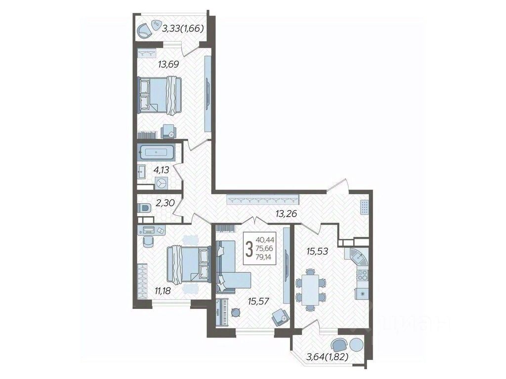 Продаётся 3-комнатная квартира в строящемся доме (Дом Литер 1), срок сдачи: 1 кв. 2025, общей площадью 79.14 кв.м., на 8 этаже. Без отделки, но с возможностью заказать отделку